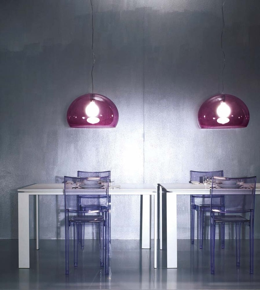 FL/Y "me to the Moon" ist eine Hängelampe die euch von allen Seiten den Tag erleuchtet. Die Lampe wird in drei verschiedenen Größen angeboten: Fl/Y (Durchmesser 52 cm, Höhe des Lichtschirms 33 cm), Small Fl/Y (Durchmesser 38 cm, Höhe des Lichtschirms 28 cm) .einem runden Fuß, der in eine Tropfenform ausläuft. FL/Y ist eine Hängelampe mit wesentlichen Linien. Die besondere Transparenz des Materials und die leuchten Farben erinnern an Seifenblasen, schillernd mit Lichtreflexen. Außerdem ist der Lampenschirm keine perfekte Halbkugel, sondern die Sekantenebene befindet sich unter dem Durchmesser, um das Licht besser einzufangen. Die Lampe wird in drei verschiedenen Größen angeboten: Fl/Y (Durchmesser 52 cm, Höhe des Lichtschirms 33 cm), Small Fl/Y (Durchmesser 38 cm, Höhe des Lichtschirms 28 cm) .einem runden Fuß, der in eine Tropfenform ausläuft.