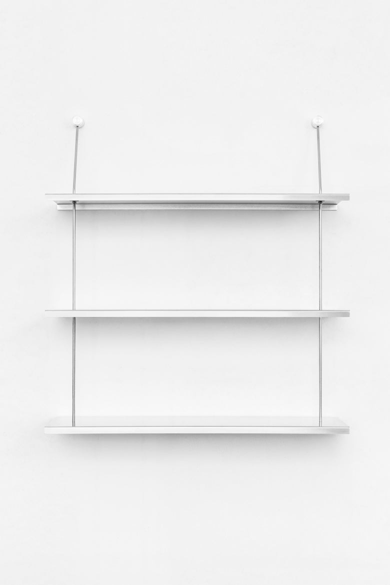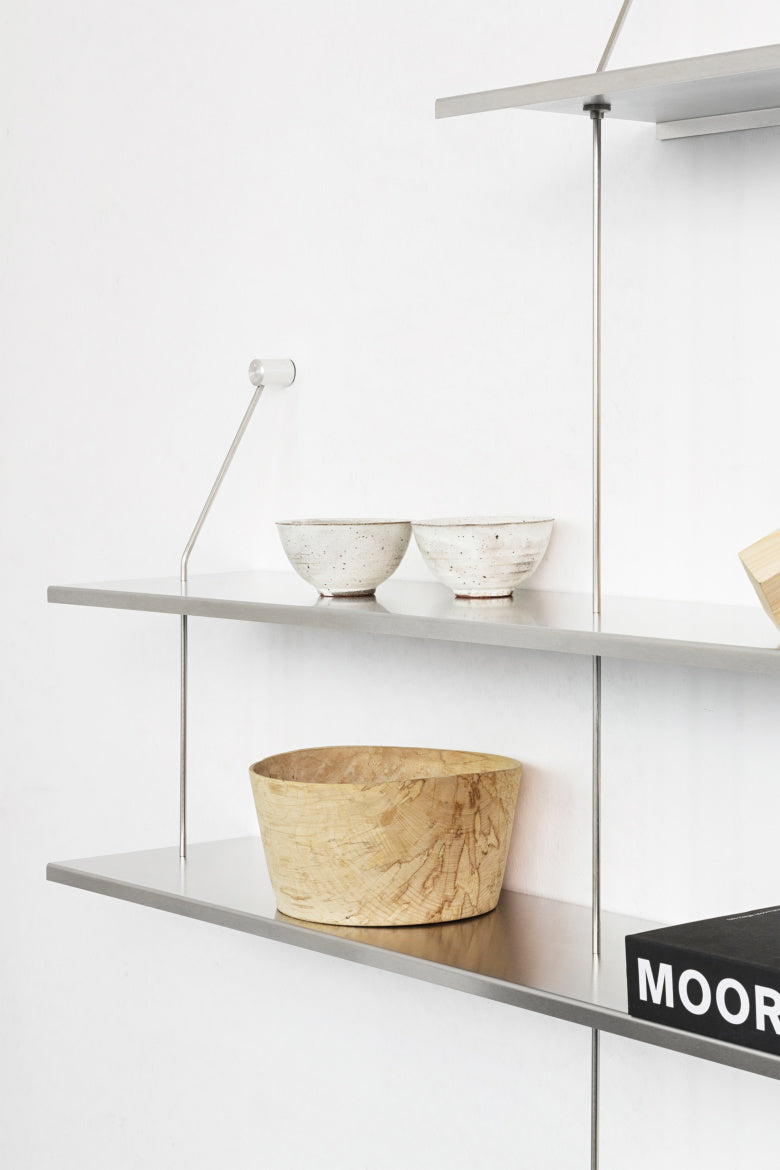 Liesl ist ein modulares Regalsystem mit vier Böden und vier Stangen, das vielfältige Kombinationsmöglichkeiten eröffnet. Die Konstruktion kommt ohne Bohren und Schrauben aus und lehnt sich dezent an die Wand, scheinbar schwebend und klar in der Wirkung. Liesl verbindet funktionale Einfachheit mit zeitloser Gestaltung und fügt sich ruhig und selbstverständlich in unterschiedliche Räume ein.