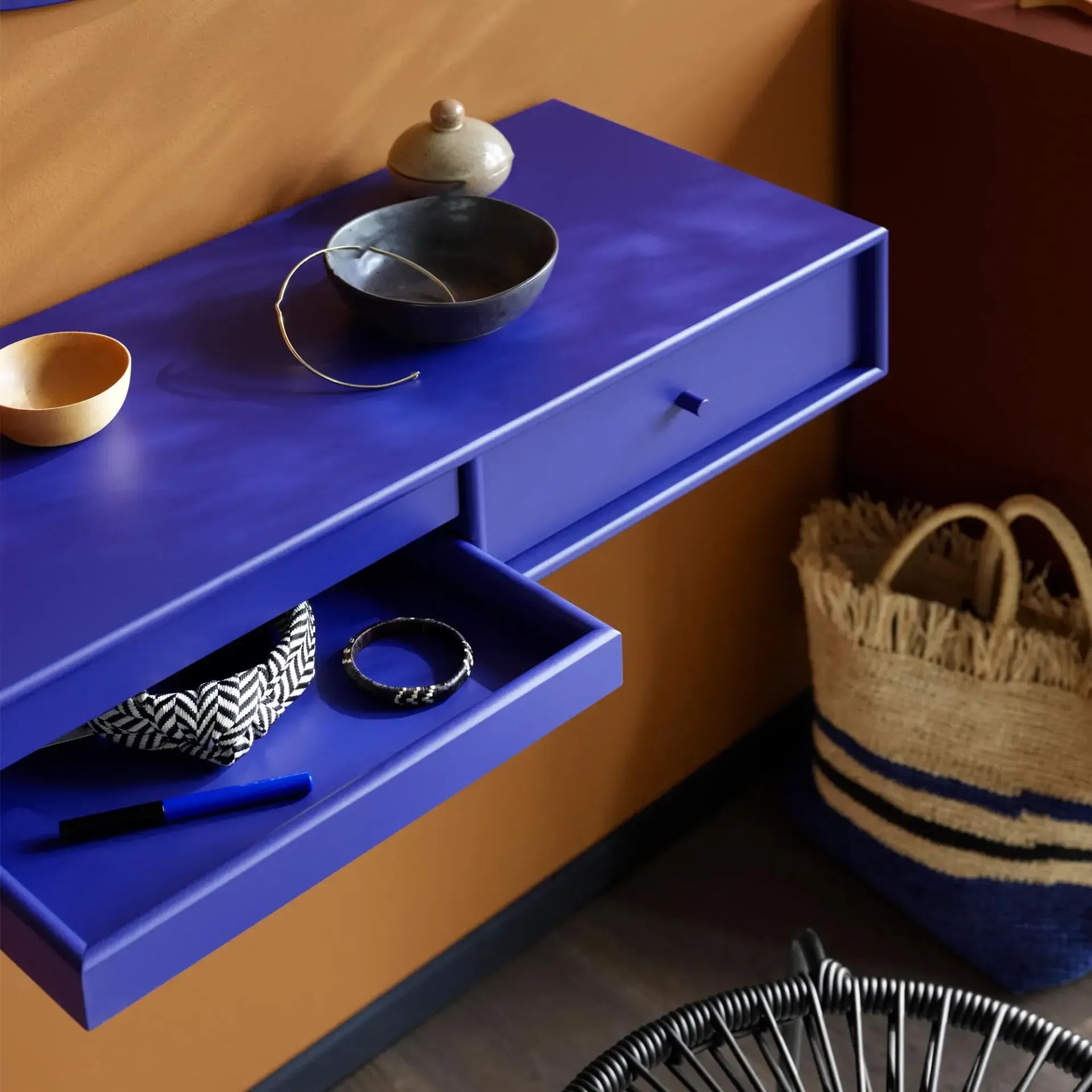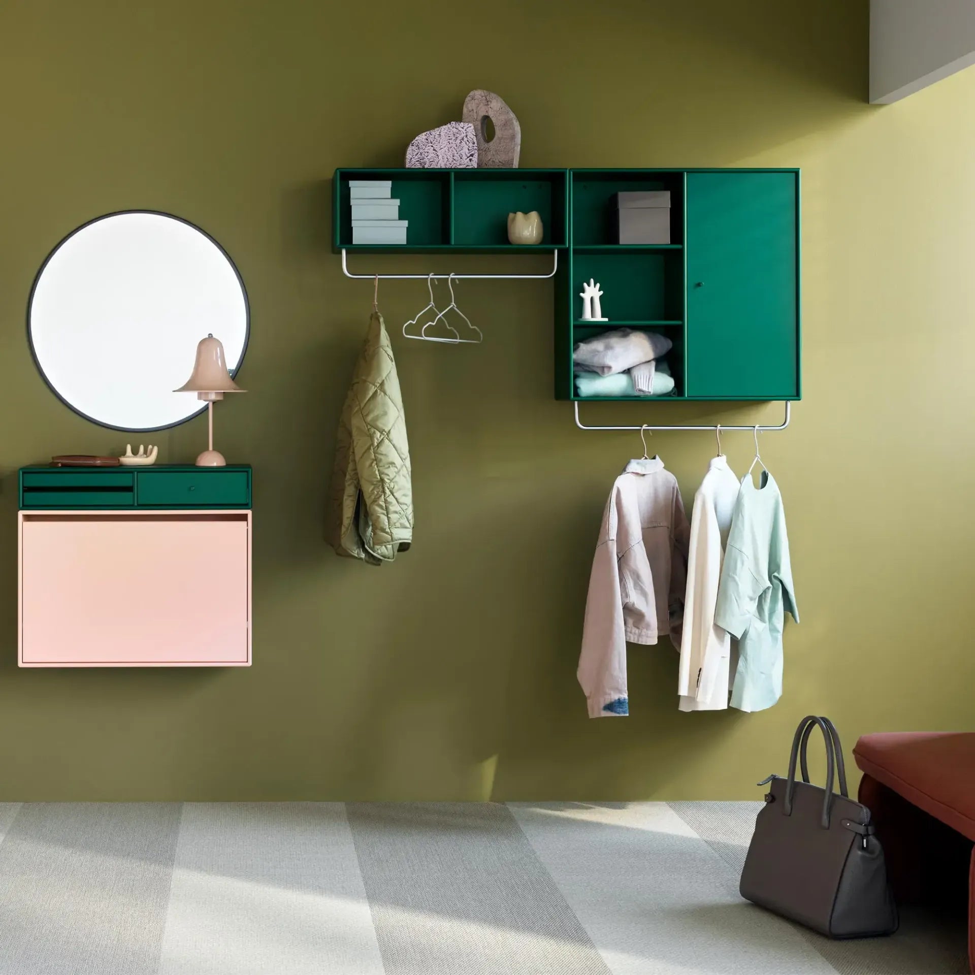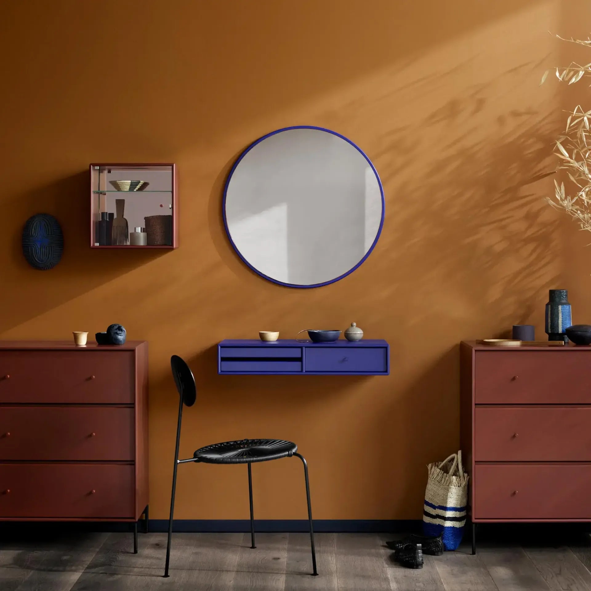 MAKEUP von Peter J. Lassen ist ein wandmontiertes Regal aus der Montana Selection. Mit Schublade und zwei Tabletts bietet es kompakten Stauraum für Kosmetik, Schmuck oder Accessoires. In Kombination mit einem Spiegel entsteht eine funktionale Schminkecke für Schlaf-, Gästezimmer oder Flur. Dank seiner geringen Tiefe eignet sich MAKEUP auch als kleiner Schreib- oder Maltisch. Reduziert im Design, platzsparend und in 40 Lackfarben erhältlich, fügt es sich mühelos in jedes Interieur ein.