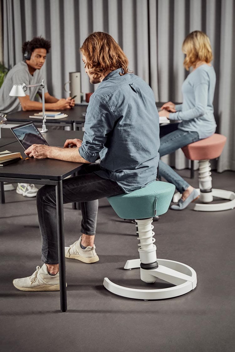 "Bounce To The Beat" eine Alterntive zum Langweiligen Bürostuhl gewünscht. Dein Aeris Swopper Macht dem Rücken Spaß statt Stress. Durch die effektive Auf- und Abwärtsbewegung, wie beim Gehen oder Laufen, werden die Bandscheiben gut ernährt und entlastet. Statt einer Lehne stützt eine starke Muskulatur den Rücken, statt Verspannungen verspürt man gute Laune. Workout statt Burnout - ohne Schwitzen. Durch die freie Beweglichkeit des Körpers kann man tiefer atmen. Das regt Kreislauf und Stoffwechsel an. Man fühlt sich fitter und wacher. Und nebenbei werden zusätzliche Kalorien verbrannt. Einfach so. Buckeln war gestern. Das bodennahe Gelenk und die Feder sorgen dafür dass der Körper mit jeder Bewegung des Körpers mitgeht. Sogar wenn man sich nach vorn neigt, um z. B. einen Flyer über die Vorteile des Aeris Swoppers zu lesen, bleibt der Rücken dabei gerade. Ganz automatisch. Durch die effektive Auf- und Abwärtsbewegung, wie beim Gehen oder Laufen, werden die Bandscheiben gut ernährt und entlastet. Statt einer Lehne stützt eine starke Muskulatur den Rücken, statt Verspannungen verspürt man gute Laune. Workout statt Burnout - ohne Schwitzen. Durch die freie Beweglichkeit des Körpers kann man tiefer atmen. Das regt Kreislauf und Stoffwechsel an. Man fühlt sich fitter und wacher. Und nebenbei werden zusätzliche Kalorien verbrannt. Einfach so. Buckeln war gestern. Das bodennahe Gelenk und die Feder sorgen dafür dass der Körper mit jeder Bewegung des Körpers mitgeht. Sogar wenn man sich nach vorn neigt, um z. B. einen Flyer über die Vorteile des Aeris Swoppers zu lesen, bleibt der Rücken dabei gerade. Ganz automatisch.