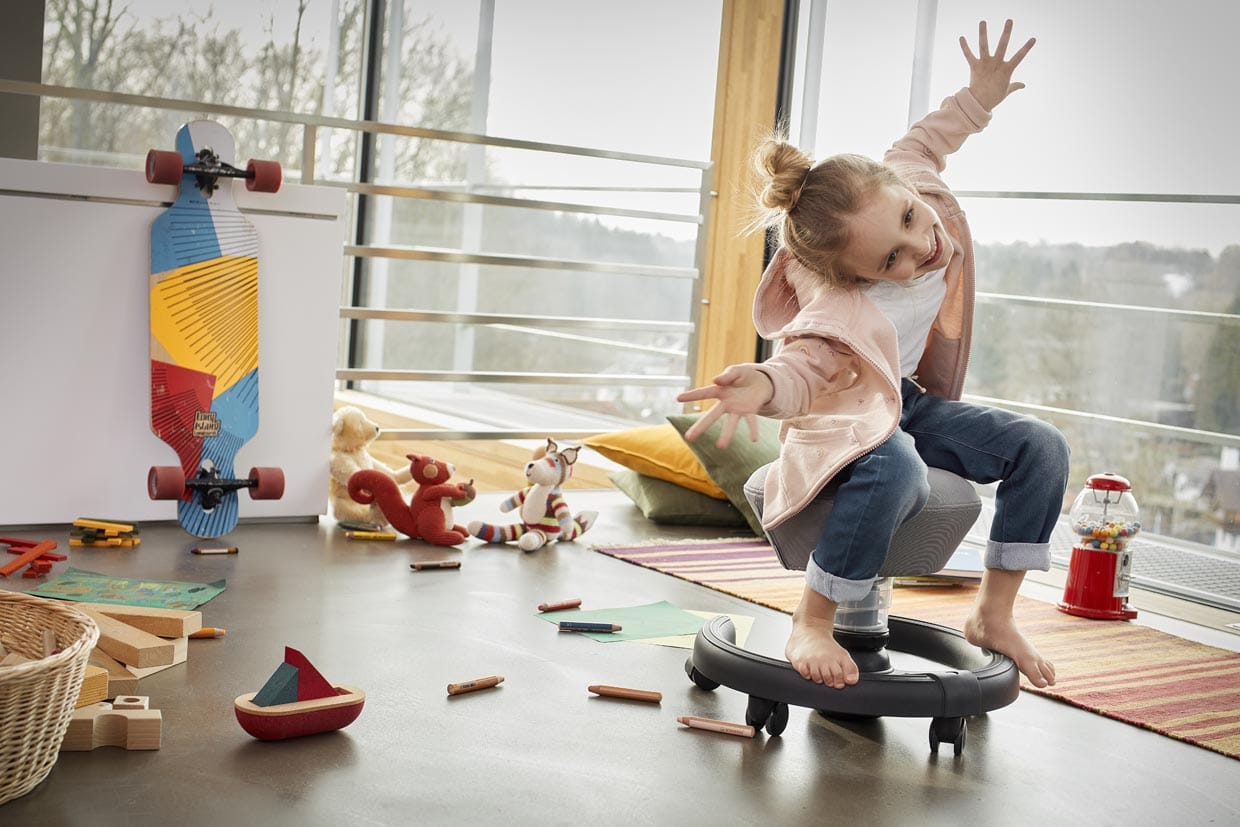 Der 3D-Aktiv-Sitz fördert durch seine Flexibilität die Beweglichkeit der Wirbelsäule. Und das vertikale Schwingen ähnelt den natürlichen Auf- und Abwärtsbewegungen beim Laufen. Das stärkt den Rücken und die Muskulatur.